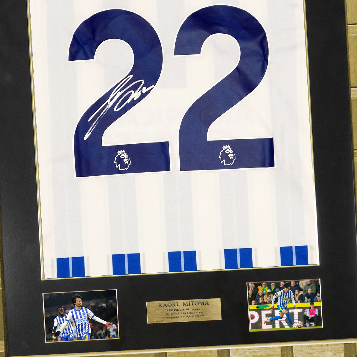 三笘薫 直筆サイン入りブライトン24/25ホームユニフォーム特製フレーム