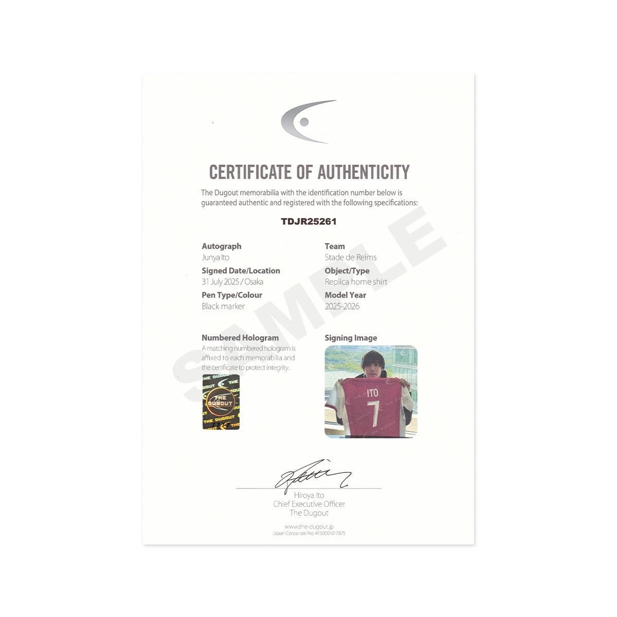 伊東純也 直筆サイン入りスタッドランス25/26ホームユニフォーム